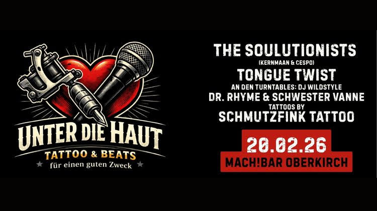 Am 20. Februar 2026 findet in Oberkirch das Charity Event „Unter die Haut“ statt. Veranstaltungsort ist die Mach!BAR Oberkirch am Kirchplatz 1. Beginn ist um 17 Uhr.